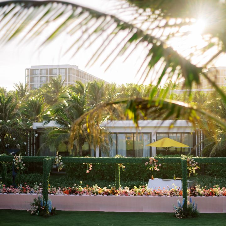 Say “I do” on the powder-soft sand of Emerald Bay, in the European-style Pink Pearl Garden hidden behind a rosy mansion or even against the dramatic backdrop of a Vietnamese imperial gate. The themed experience extends to the breathtaking Turquoise Suite, where floor-to-ceiling windows frame the ocean for family tea ceremonies. It’s a one-of-a-kind setting for couples who see their wedding as a grand, creative production and a true escape from the ordinary.